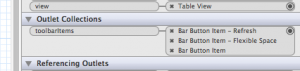 @property (retain) IBOutletCollection(UIBarButtonItem) NSArray *toolbarItems;